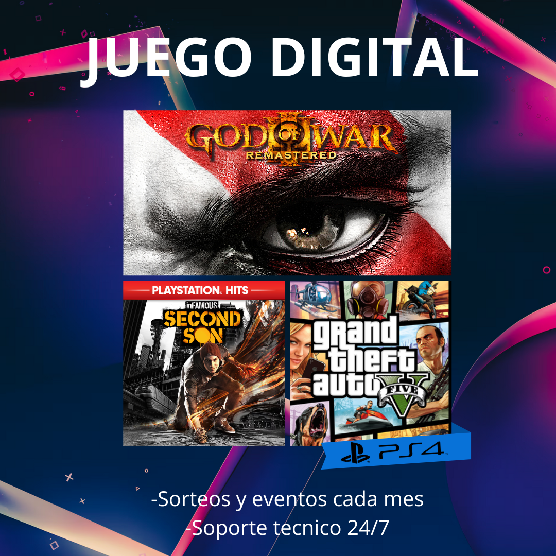 Inicio / Catalogo / GTA V, GOW III REMASTED , INFAMUS SECOND